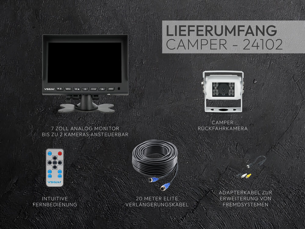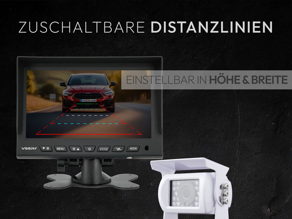Klare Sicht, mehr Sicherheit – das VSG24 7 Zoll Rückfahrsystem Camper Ob beim Einparken auf dem Campingplatz, beim Rangieren mit dem Anhänger oder auf engen Straßen – mit dem VSG24 Rückfahrsystem Camper behalten Sie den Überblick. Der hochauflösende 7-Zoll-Monitor mit zwei Videoeingängen, zuschaltbaren Distanzlinien und automatischer Einschaltfunktion bietet höchsten Komfort und Sicherheit. Die robuste Kamera liefert ein klares Bild bei Tag und Nacht. Ideal für Wohnmobile, Wohnwagen, Transporter oder LKW – einfach nachzurüsten, wetterfest, langlebig.