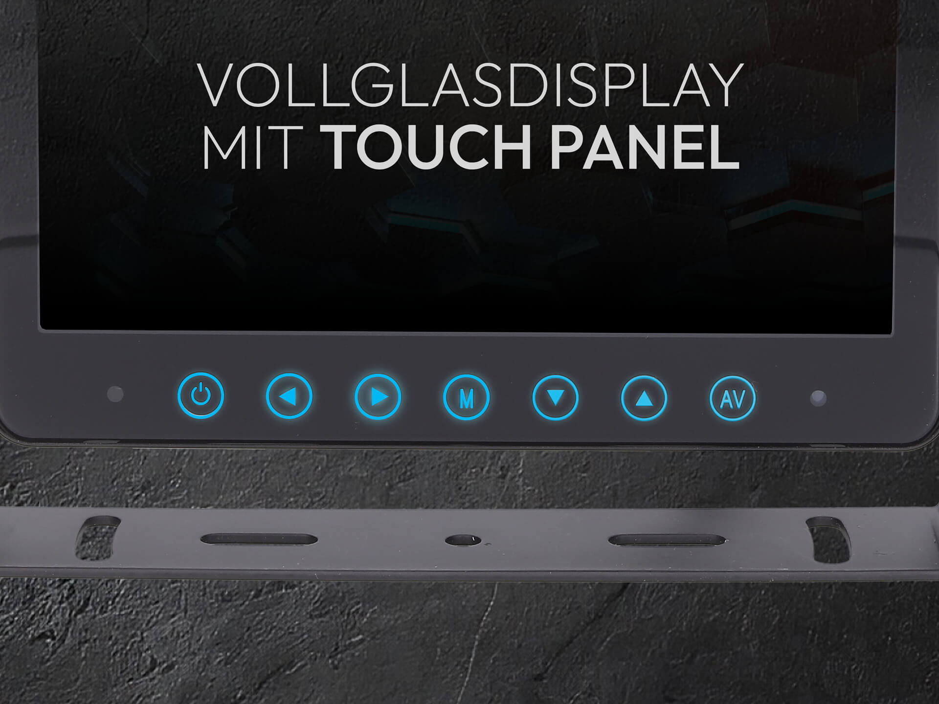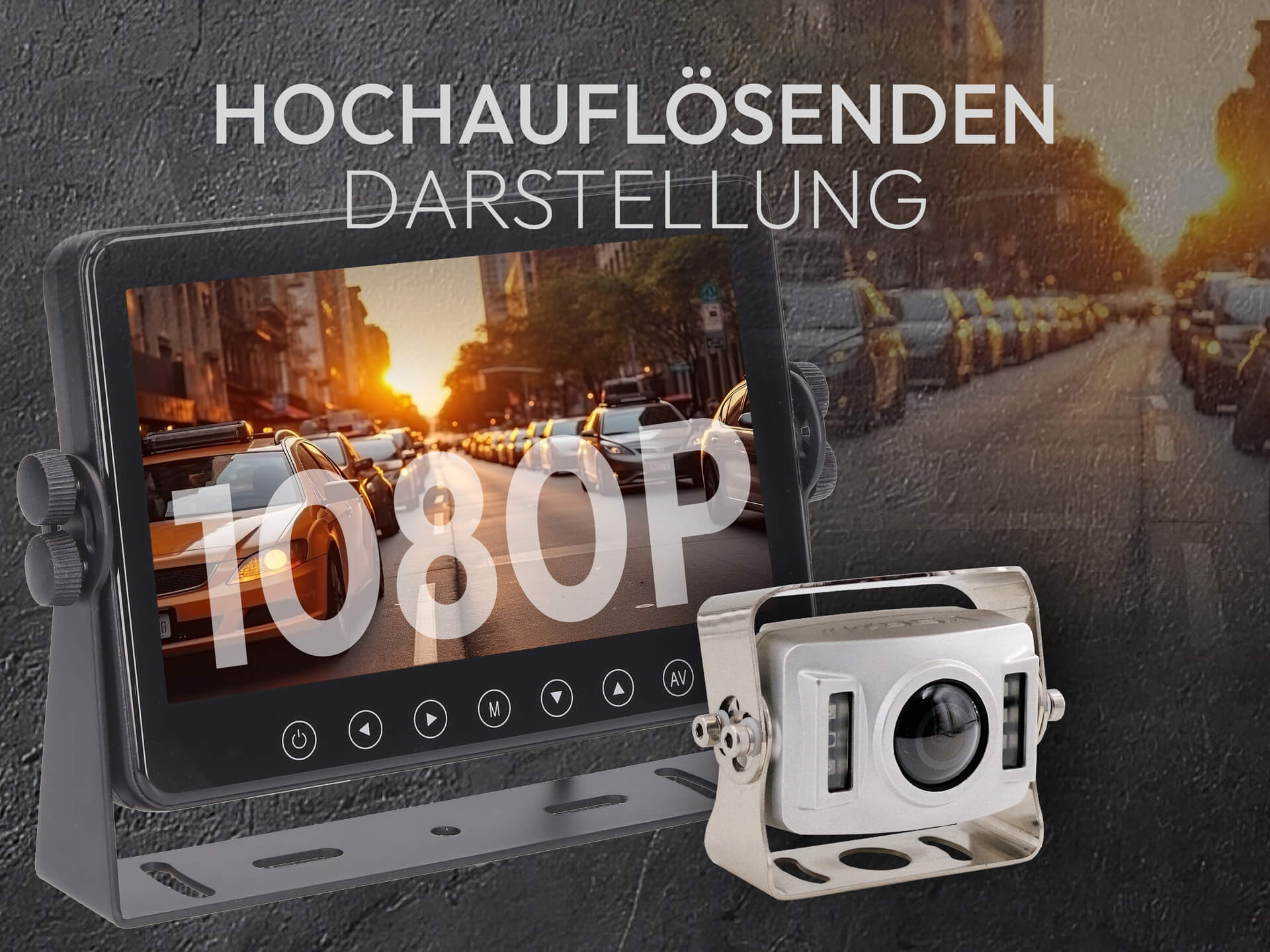 7 Zoll Vollglas Monitor – Profi-Technik auf höchstem Niveau Der hochwertige 7 Zoll Monitor mit edler Glasfront bietet gestochen scharfe Bilddarstellung und eine intuitive Menüführung. Dank umfangreicher Einstellungsmöglichkeiten ist jeder Kamerakanal individuell konfigurierbar – für maximale Anpassung an Fahrzeug und Einsatzbereich.