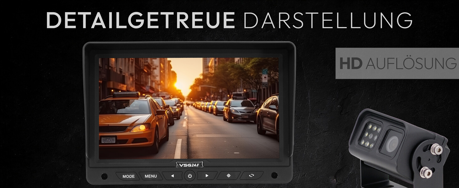 Kamera und Monitor liefern gestochen scharfe Full-HD-Bilder – für präzises Rangieren, Ankuppeln oder Rückwärtsfahren bei jeder Tageszeit und Witterung.