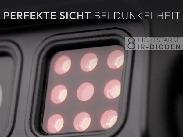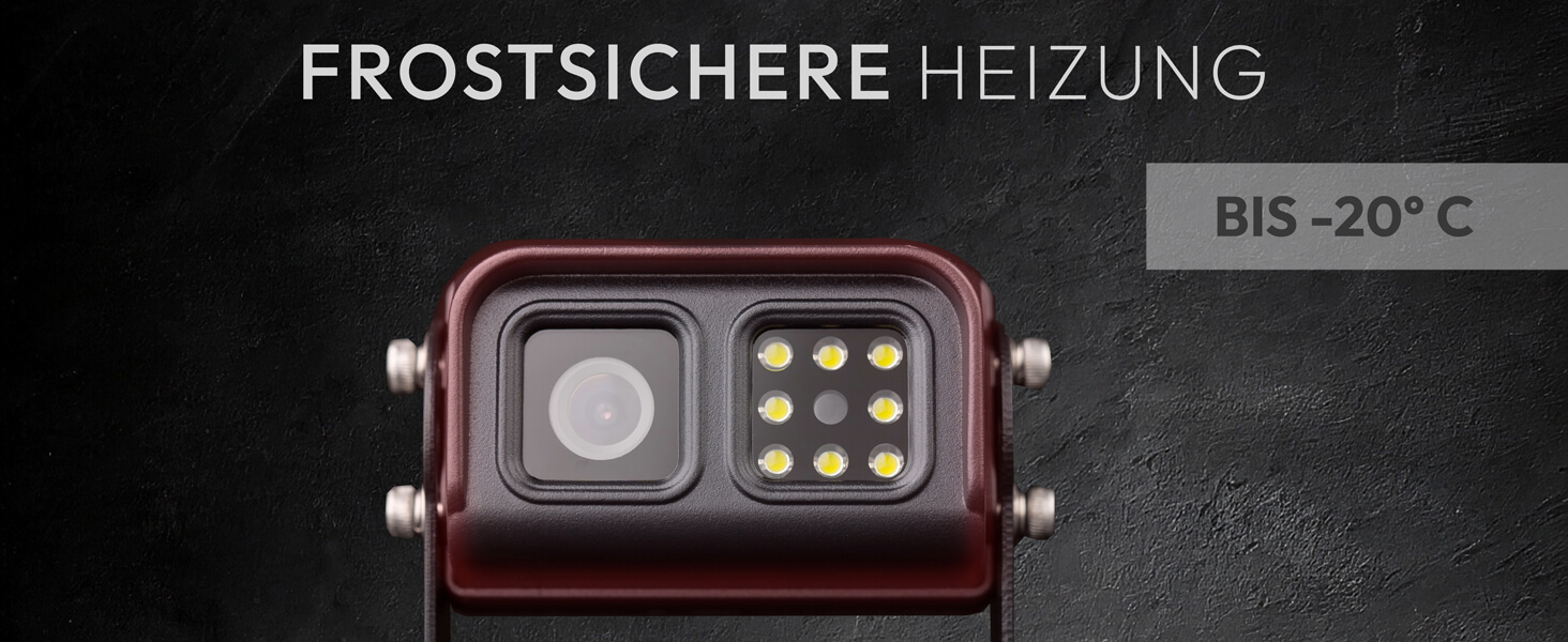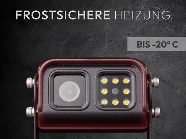Kamera mit Heizung & IP68 Die integrierte Heizung schützt die Kamera zuverlässig vor dem Einfrieren, während das robuste IP68-Gehäuse optimal vor Wasser und Schmutz schützt – ideal für den ganzjährigen Einsatz.