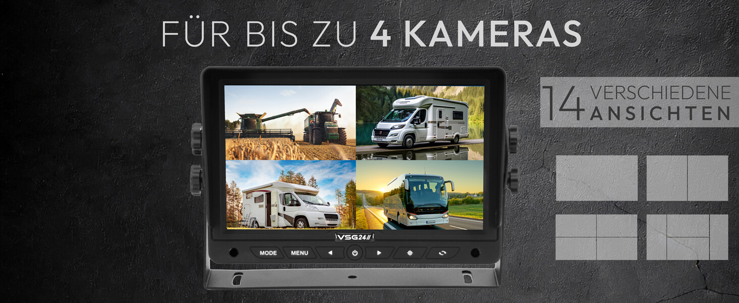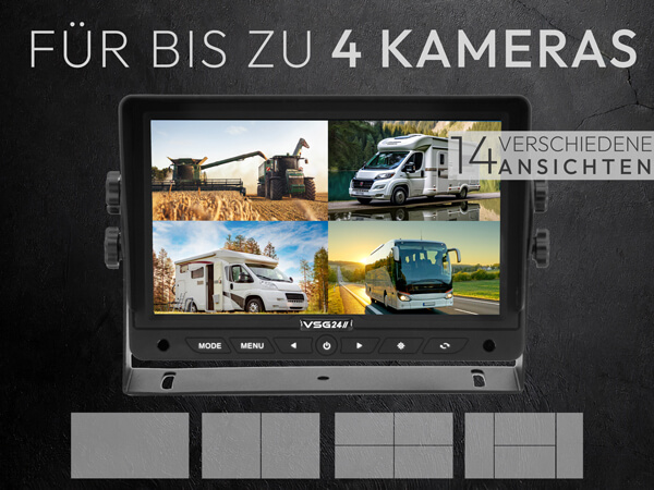 4 Videoeingänge & Split-Anzeige