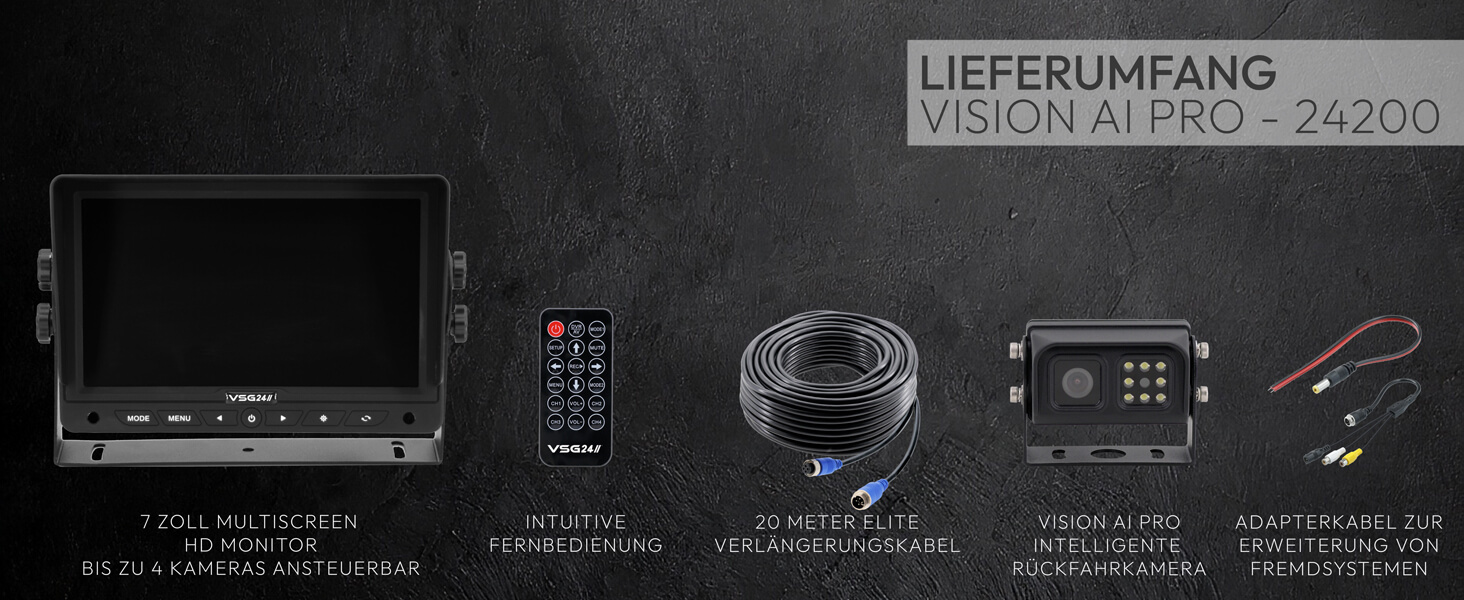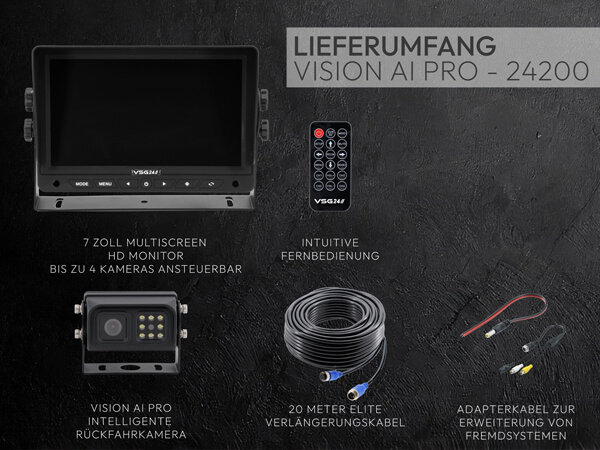 Technologie, die vorausdenkt. Sicherheit, die bleibt. Das VSG24 Vision AI Pro Rückfahrsystem setzt neue Maßstäbe für Rückfahrsicherheit. Die intelligente 1080P HD-Kamera erkennt automatisch Personen und Hindernisse im Gefahrenbereich und warnt akustisch, bevor es kritisch wird. Dank integrierter Heizfunktion und korrosionsgeschütztem Gehäuse ist sie selbst unter widrigsten Bedingungen einsatzbereit – ideal für professionelle Anwendungen und anspruchsvolle Camper.