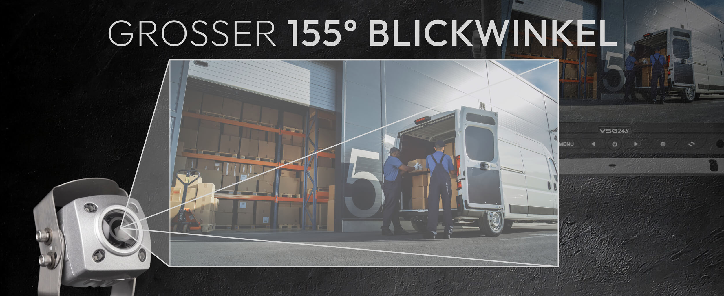 155° Weitwinkel für maximale Übersicht Erfassen Sie mühelos den gesamten Bereich hinter Ihrem Fahrzeug – perfekt zum sicheren Rangieren, Rückwärtsfahren und Überwachen des toten Winkels.