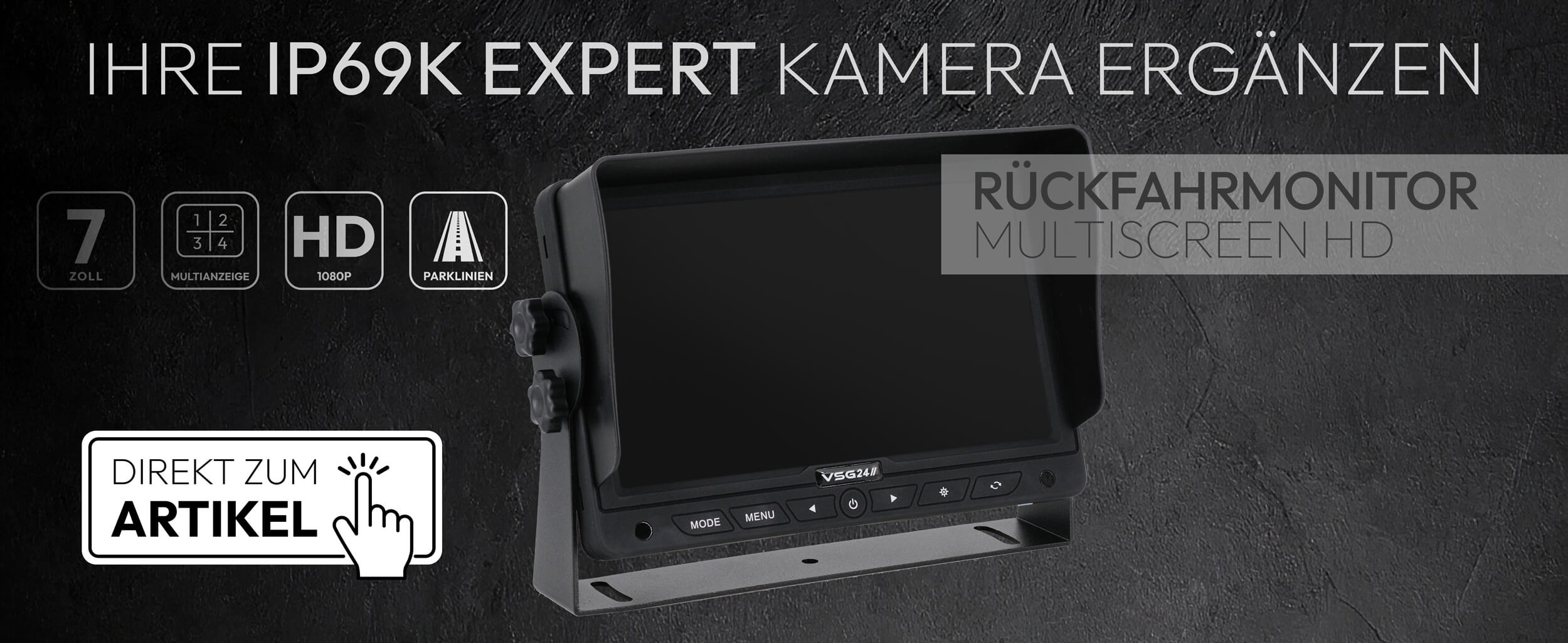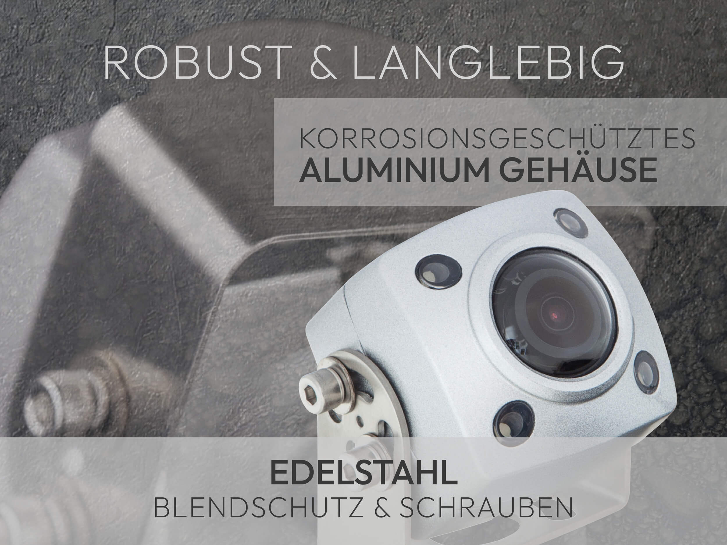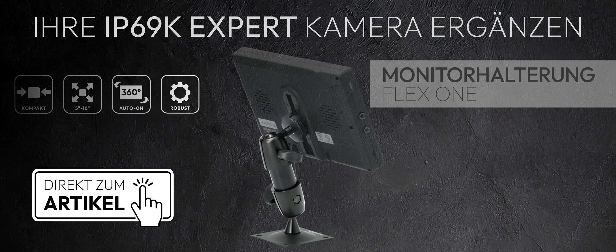EXPERT Rückfahrkamera IP69K Die EXPERT Rückfahrkamera IP69K wurde für anspruchsvolle Anwendungen im privaten und gewerblichen Bereich entwickelt und kombiniert robuste Technik mit intelligenter Assistenz. Eine integrierte Personenerkennungsfunktion erkennt Personen im Gefahrenbereich und warnt den Fahrer sowohl visuell auf dem Monitor als auch akustisch über die Monitorlautsprecher (sofern vorhanden). Zusätzlich sorgt eine integrierte Heizung für zuverlässige Funktion auch bei Frost und niedrigen Temperaturen. Das kompakte Vollaluminiumgehäuse mit Edelstahlhalterung macht die Kamera extrem widerstandsfähig gegenüber Witterung und Erschütterungen. Dank des hohen IP69K-Schutzstandards bleibt sie selbst bei Regen, Staub und extremen Umwelteinflüssen zuverlässig einsatzbereit.
