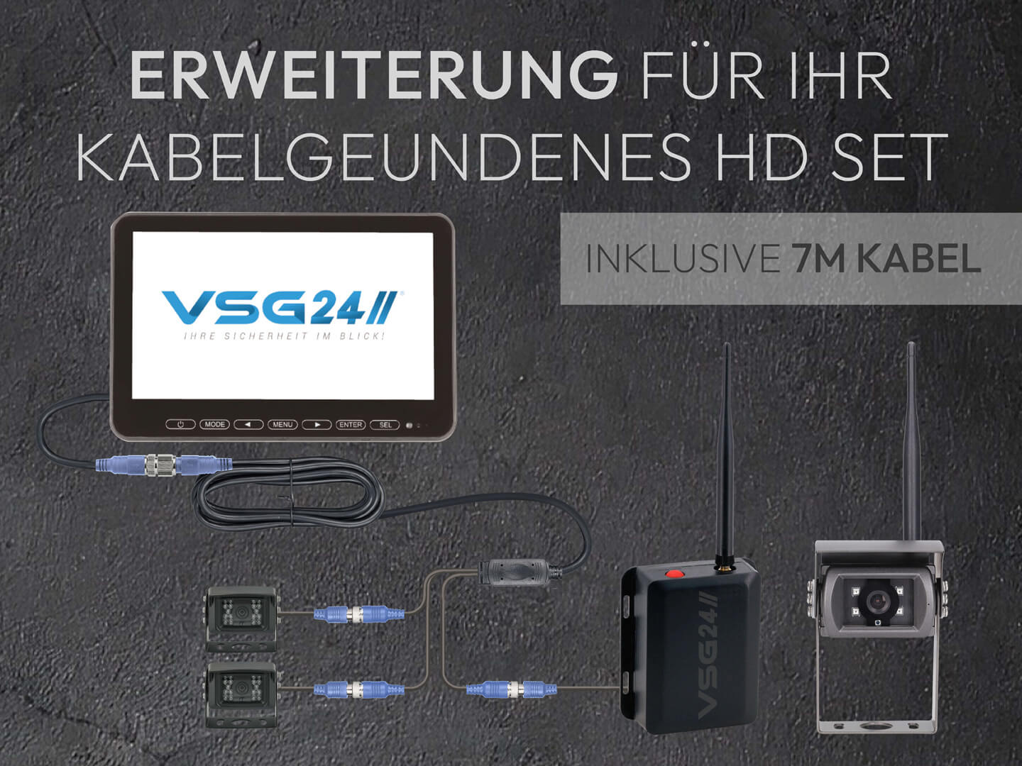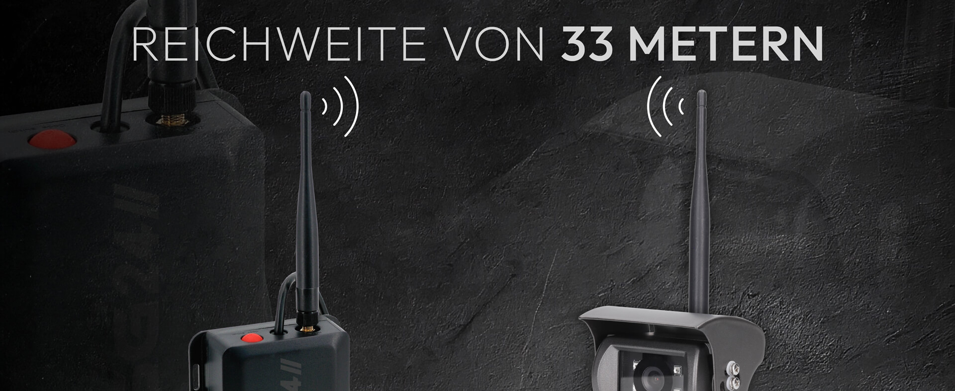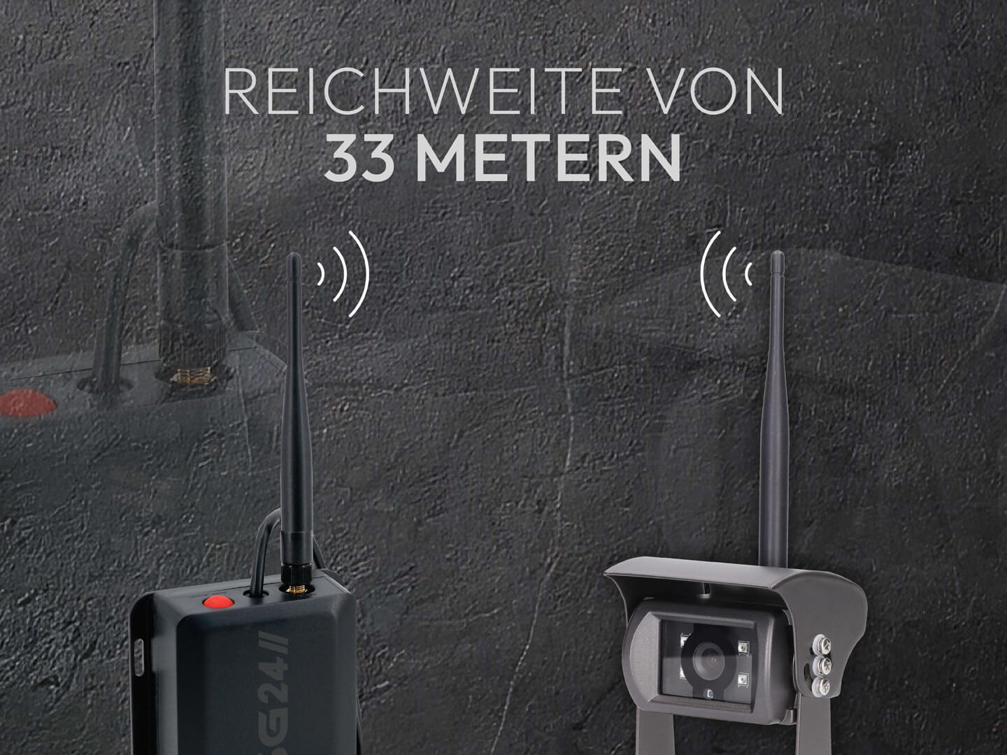 Ergänzen Sie Ihr bestehendes kabelgebundenes Rückfahrsystem einfach per Funk – mit einer Reichweite von bis zu 33 Metern und zuverlässiger HD-Bildqualität.