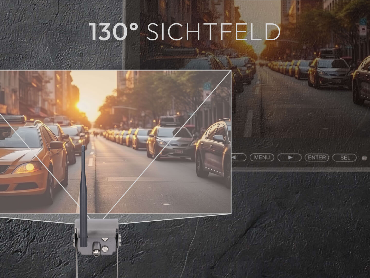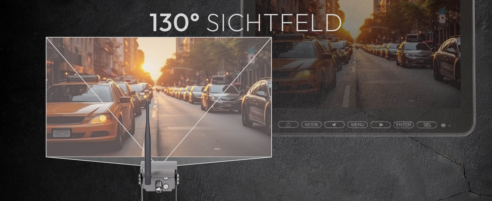 Mit einem 130° Blickwinkel sehen Sie mehr: Keine toten Winkel, kein Risiko – ideal für große Fahrzeuge und enge Manöver.