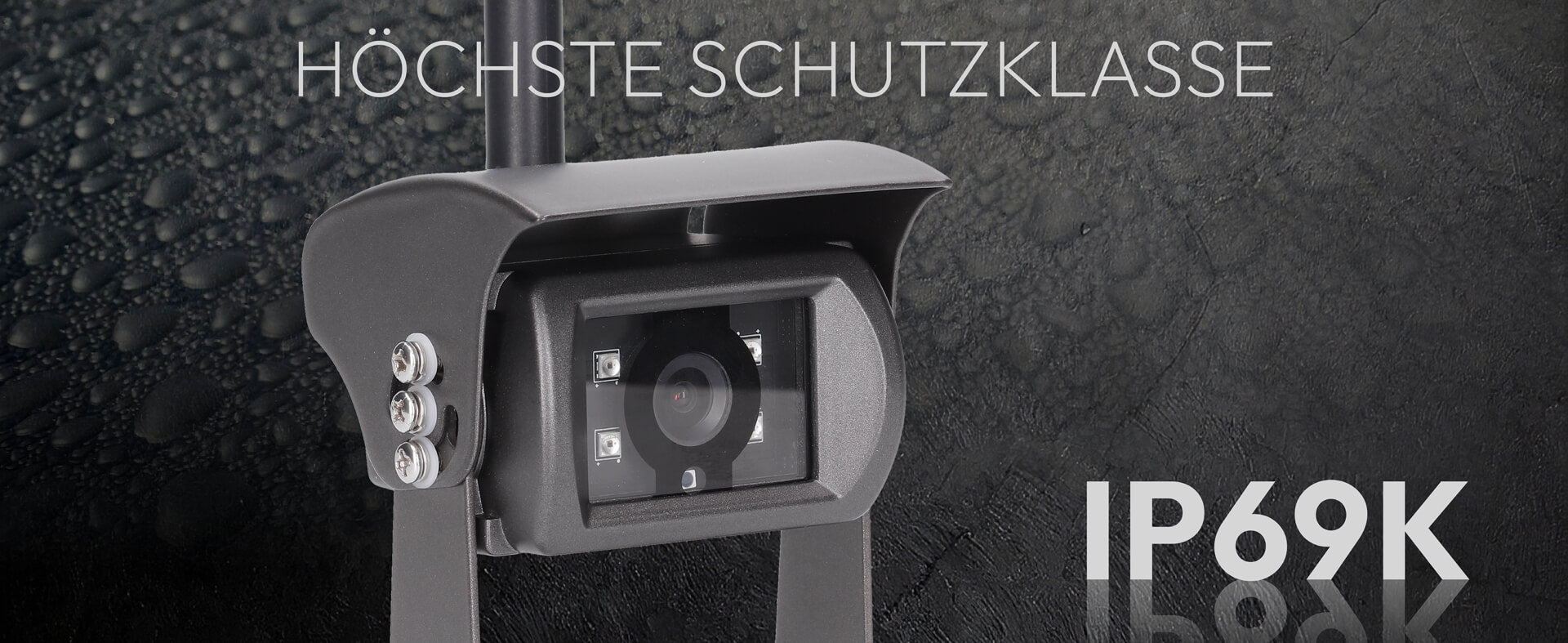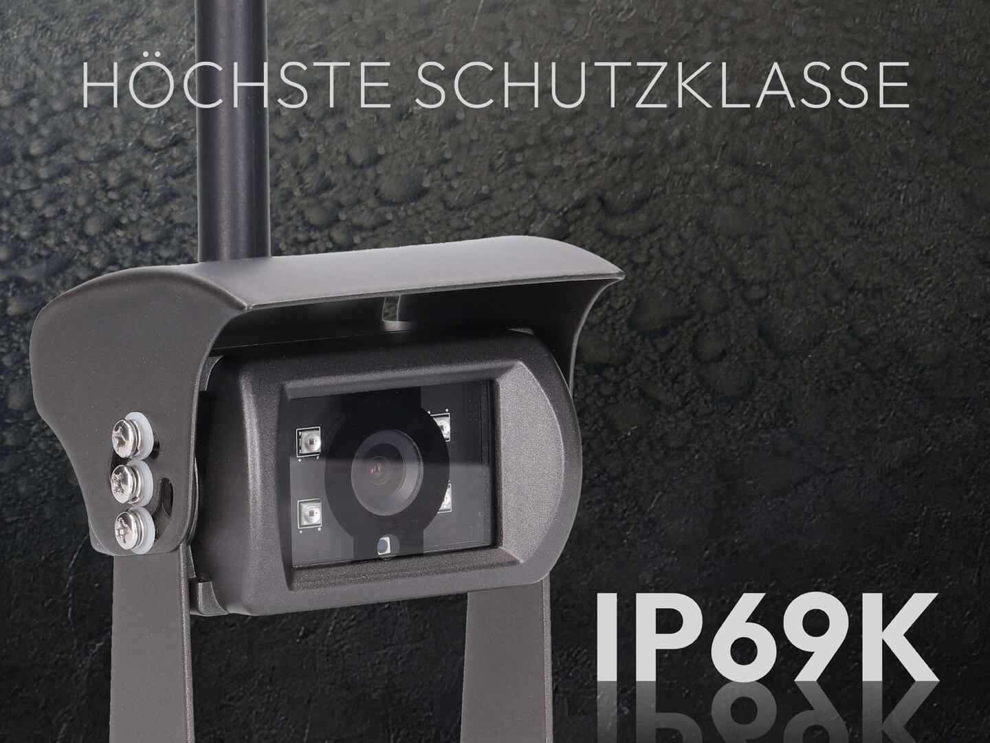 Dank IP69K-Schutz ist die Kamera wasserdicht, staubdicht und stoßfest – perfekt für Regen, Schnee, Matsch oder extreme Bedingungen.