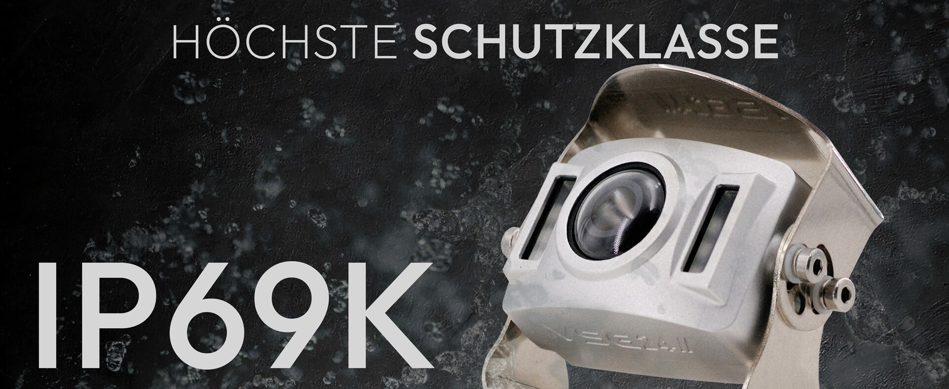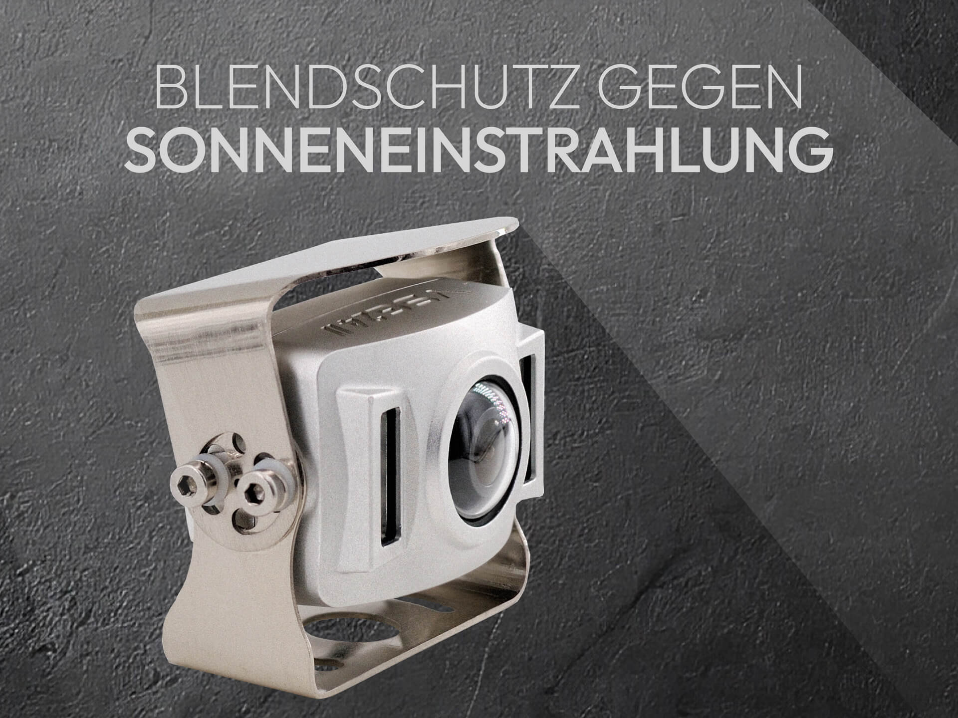 Die VSG24 Rückfahrkamera VISION ist die Spitze moderner Rückfahrtechnologie. Mit echtem 1080P HD-Bild, einem ultraweiten 155° Blickwinkel und intelligenter Personenerkennung bietet sie Sicherheit auf höchstem Niveau. Das robuste Vollaluminium-Gehäuse mit Edelstahlhalterung und Sonnenschutzblende ist nicht nur langlebig, sondern auch extrem widerstandsfähig gegen Wasser, Schmutz und Staub dank IP69K Schutzklasse. Leistungsstarke IR-Dioden sorgen für klare Nachtsicht, während die intelligente Bildverarbeitung Hindernisse zuverlässig erkennt. Perfekt für anspruchsvolle Einsätze – vom Wohnmobil bis zum Schwerlastfahrzeug.