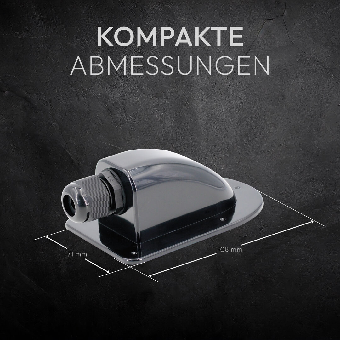 Wasserdicht Dank hochwertiger Dichtmaterialien bleibt die Durchführung selbst bei starkem Regen vollkommen dicht. Deine Kabel sind langfristig vor Feuchtigkeit geschützt.