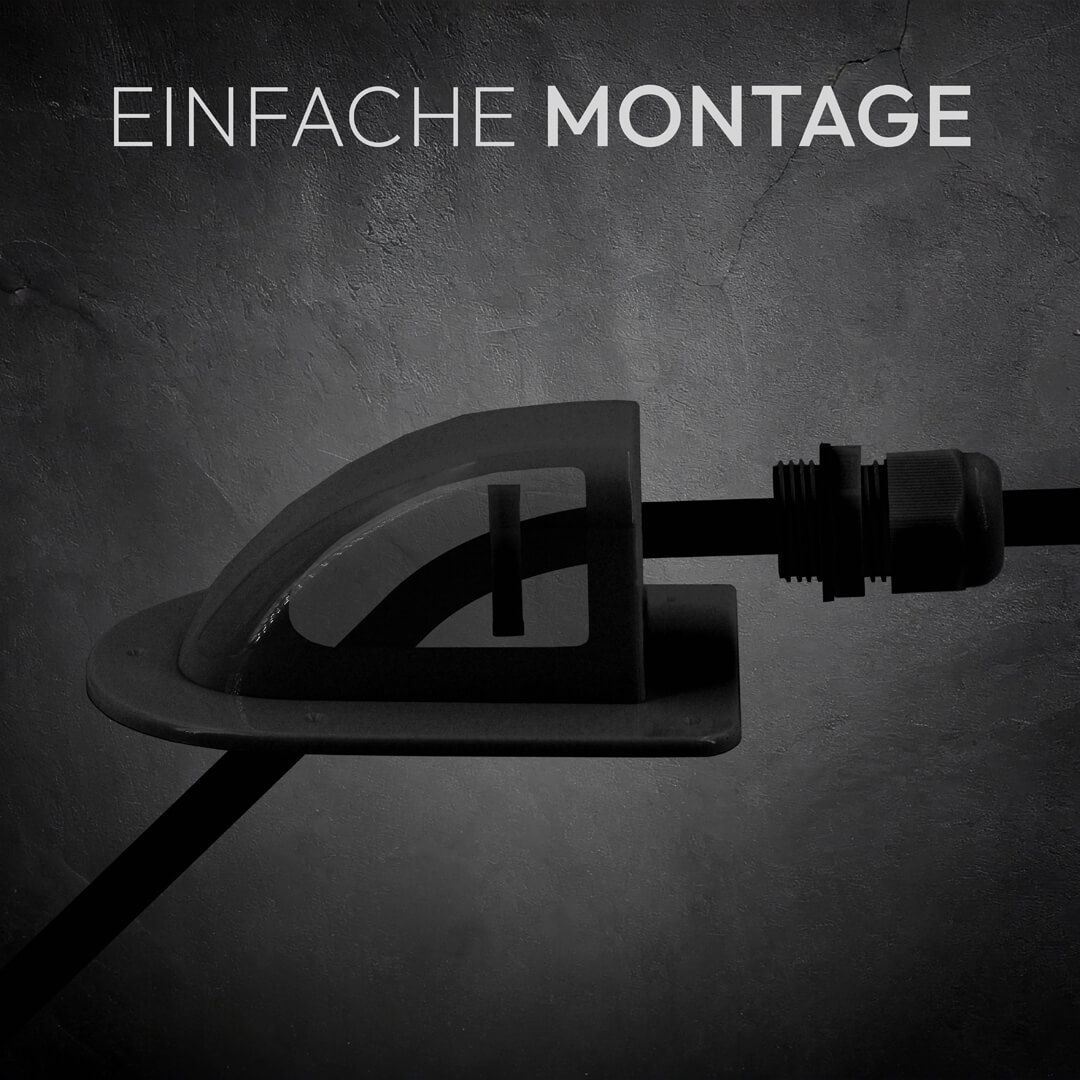 Einfache Montage Die Installation gelingt schnell und ohne Spezialwerkzeug. Die Durchführung kann problemlos geklebt oder verschraubt werden.