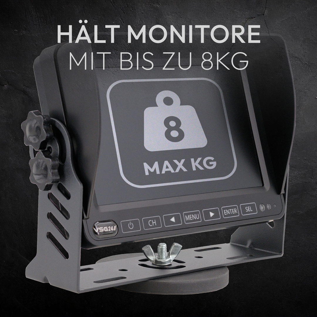 Ideal für vielfältige Fahrzeugtypen Ob PKW, LKW, Wohnmobil oder Transporter – die Halterung bietet überall eine sichere Montagefläche. Auch in Bussen, Landmaschinen oder Gabelstaplern sorgt sie für klare Sicht auf den Monitor.
