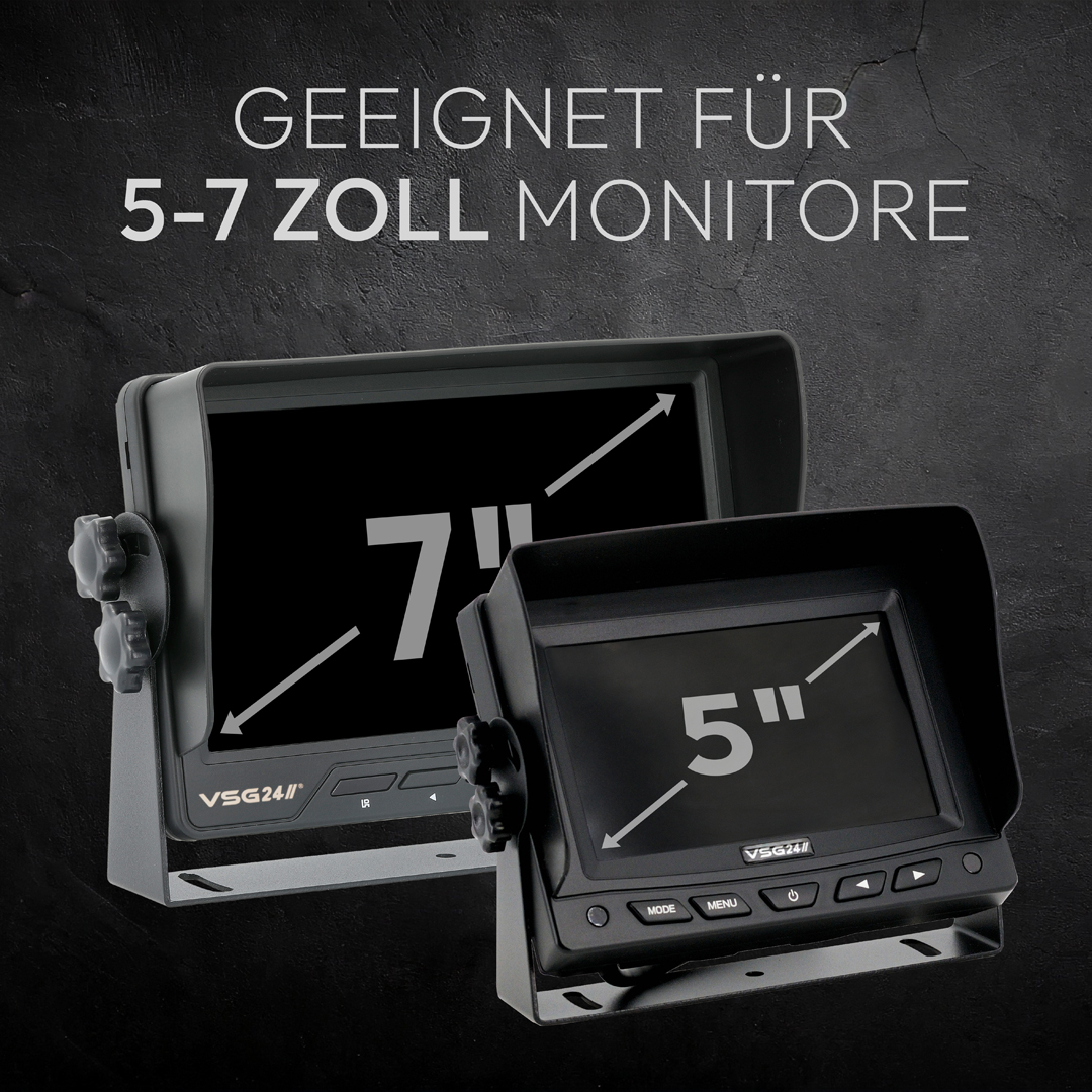 Vibrationsarmer Halt Die robuste Bauweise sorgt für einen stabilen Sitz des Monitors – sogar auf Schotter, Kopfsteinpflaster oder unebenem Gelände. Dadurch bleibt das Rückfahrbild jederzeit klar und gut erkennbar.