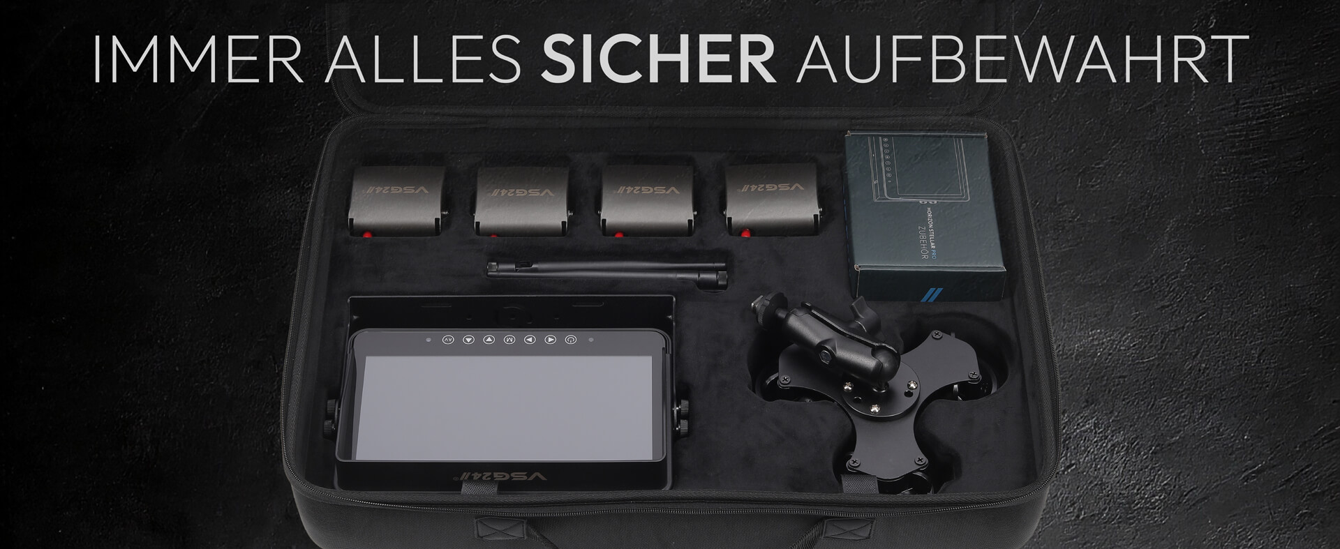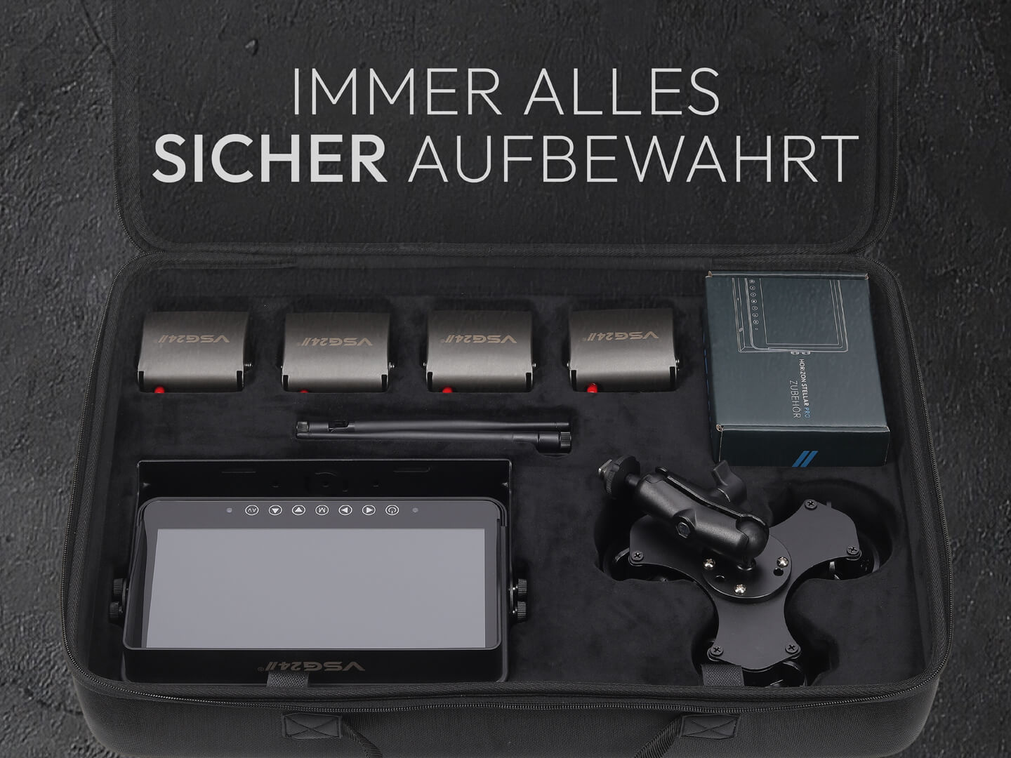 Einsatzorten. Das komplette Rückfahrkamera-Set ist jederzeit transportbereit.